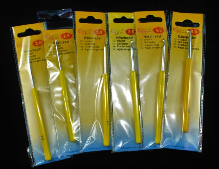 Pletací háček na vlnu s plastovou ručkou, délka 135 mm, cena za 1 ks.