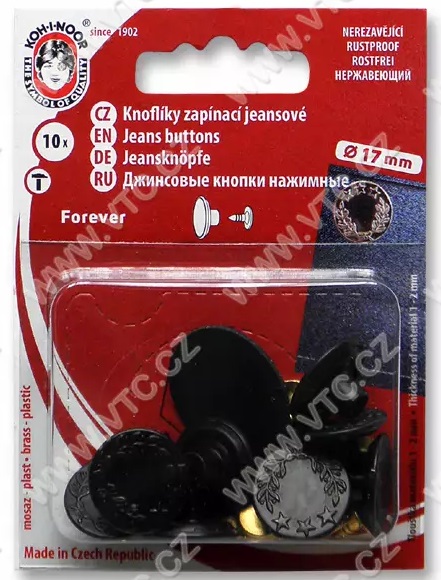 Riflové knoflíky FOREVER nesnímatelné, vel.7 (17mm), 10 ks na kartě. Český výrobek, cena za 1 kartu.