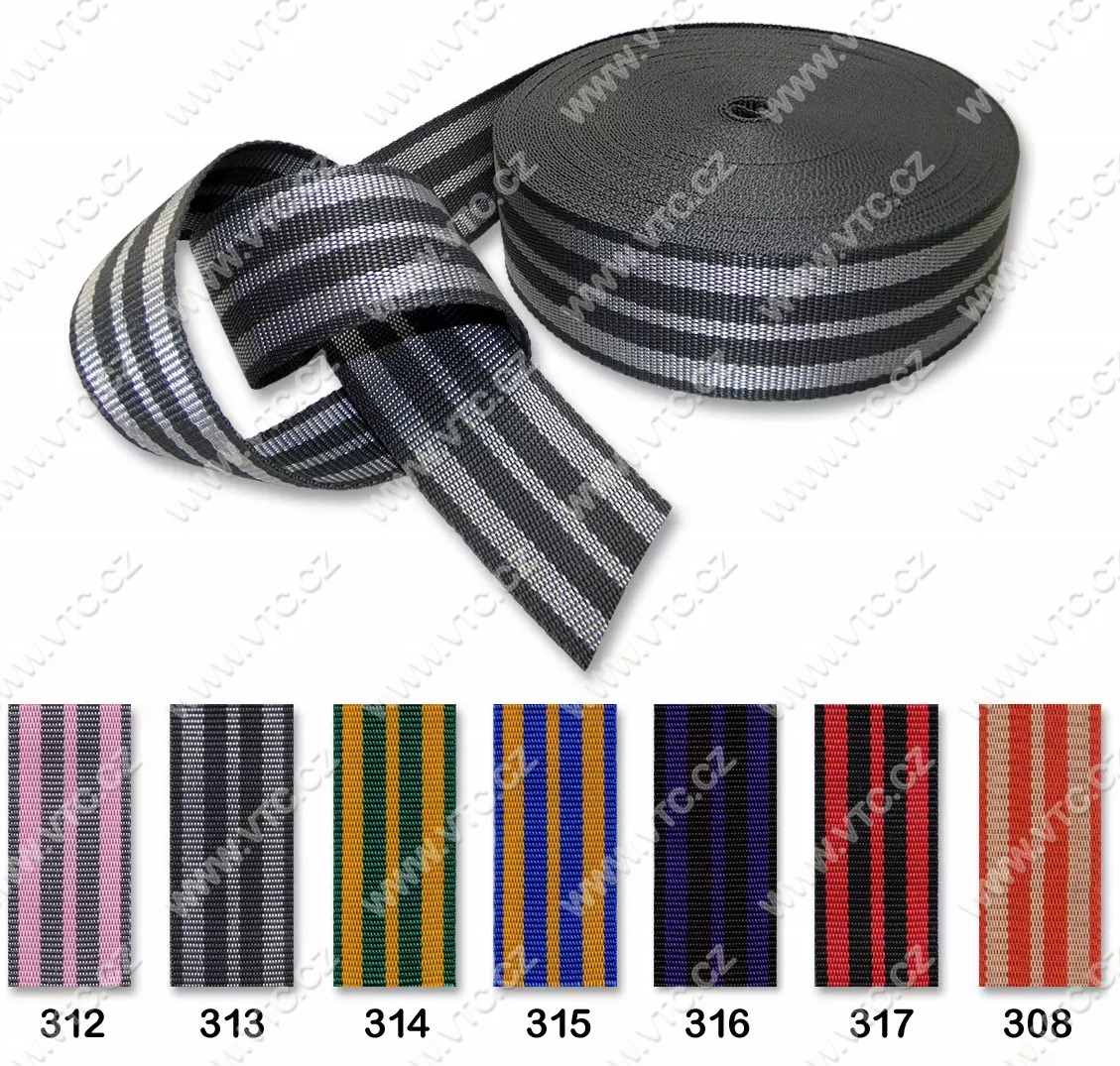 Vícebarevný popruh, šíře 50 mm, český výrobek, cena za 1 m.