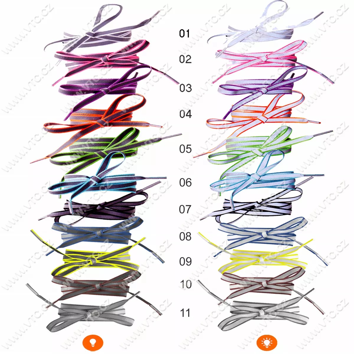 Tkaničky - šněrovadla z reflexního materiálu, délka 120 cm, baleno po 1 páru, cena za 1 pár. 100% polyester. Reflexní prvky zvyšují bezpečnost!