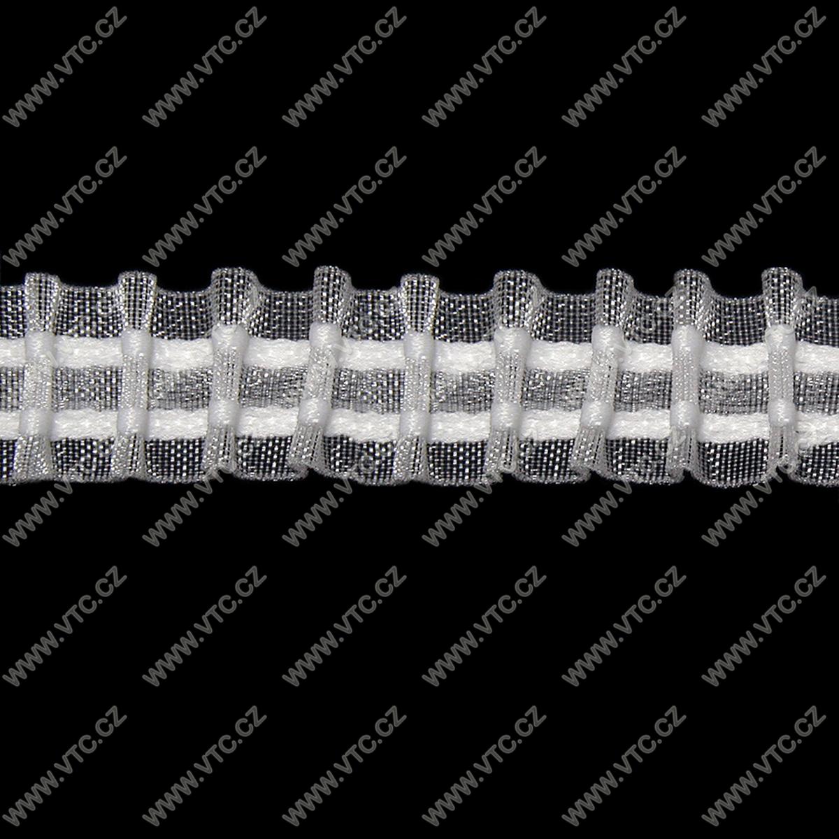 Průhledná záclonová stuha o šíři 25 mm s pravidelným tužkovým řasením. Po našití a nařasení připevníte záclonu či závěs pomocí žabek nebo háčků s využitím řady kapsiček vetkaných do stuhy. Vzdálenost jednotlivých skladů cca 1,5 cm. Doporučené řasení 1:2. Cena za1 metr.
