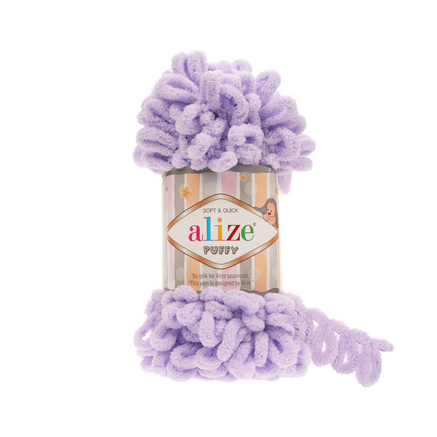 Příze Alize Puffy 146 světle fialková je silnější, ale zároveň velmi jemná a hebká žinylková příze s velkými oky určená pro pletení na rukou.