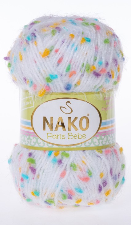 Příze Nako Paris Bebe 21327 bílá je efektní, jemná až doslova něžná příze s měkkým chloupkem vhodná na úplety pro děti a miminka.