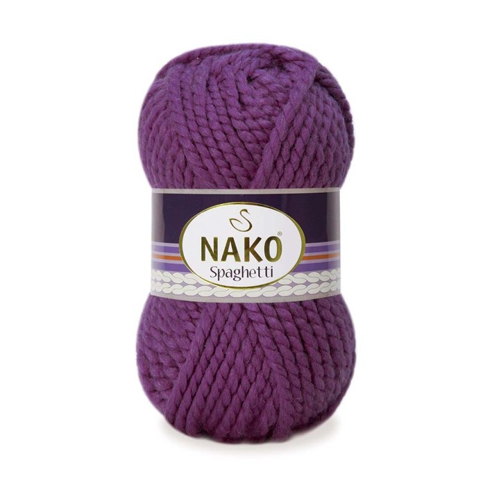 Příze Nako Spaghetti 3853 fialová je silnější směsová příze s obsahem vlny vhodná na pletení zimních svetrů, šál, nákrčníků, rukavic nebo čepic. Lze ji také použít pro pletení na rukou.