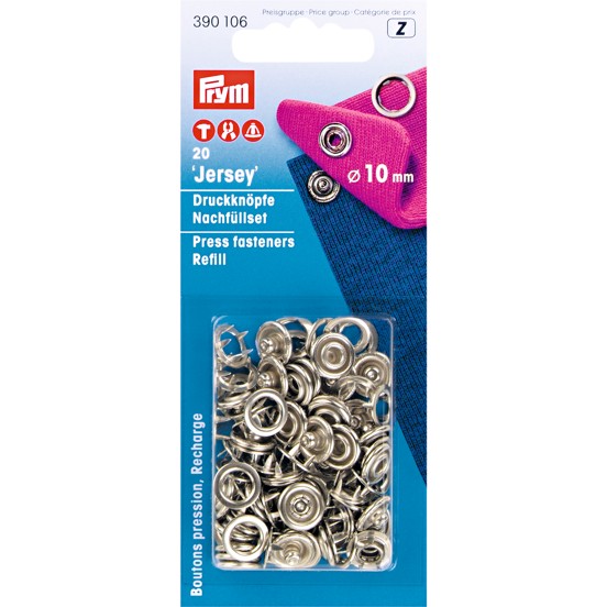 Stiskací knoflíky JERSEY 10 mm, 20 ks na kartě. Německý výrobek, cena za 1 kartu.